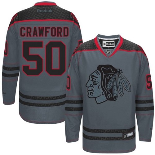 Pánské NHL Chicago Blackhawks dresy 50 Corey Crawford Authentic Charcoal Reebok Cross Check Fashion