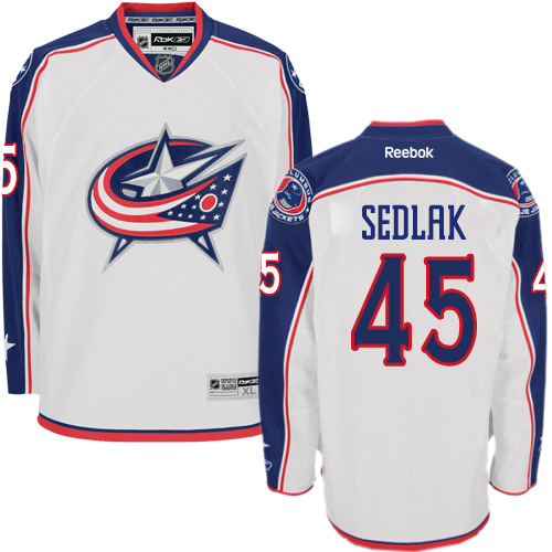 Pánské NHL Columbus Blue Jackets dresy 45 Lukas Sedlak Authentic Bílý Reebok Venkovní hokejové dresy