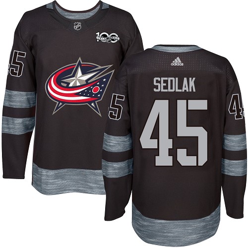 Pánské NHL Columbus Blue Jackets dresy 45 Lukas Sedlak Authentic Černá Adidas 1917 2017 100th Anniversary