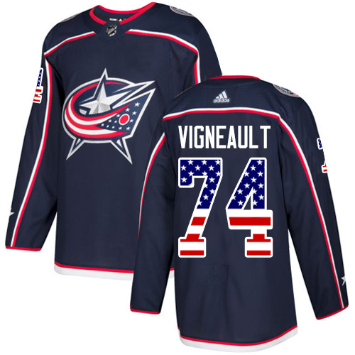 Pánské NHL Columbus Blue Jackets dresy 74 Sam Vigneault Authentic Námořnická modrá Adidas USA Flag Fashion