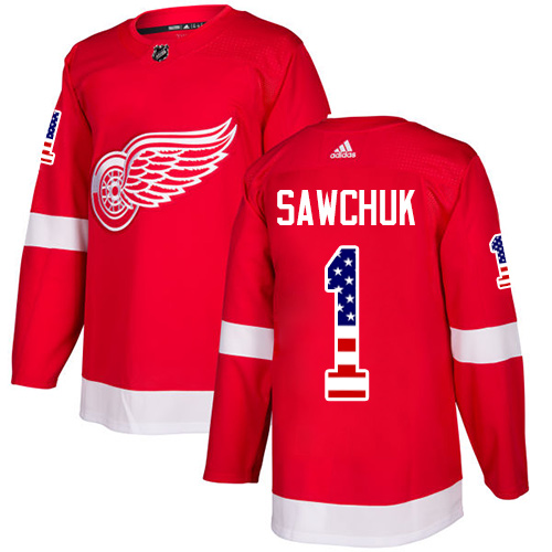 Pánské NHL Detroit Red Wings dresy 1 Terry Sawchuk Authentic Červené Adidas USA Flag Fashion
