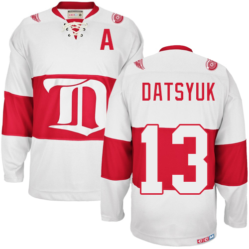 Pánské NHL Detroit Red Wings dresy 13 Pavel Datsyuk Authentic Throwback Bílý CCM Winter Classic