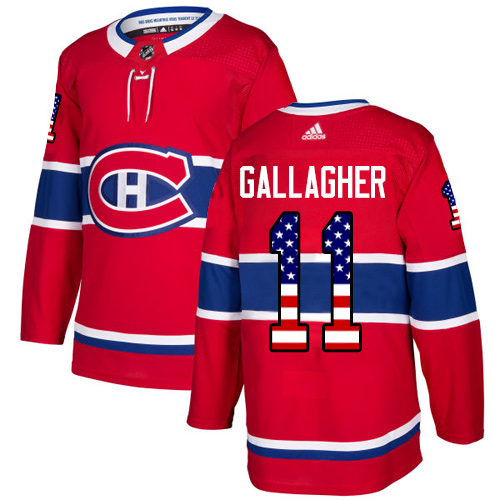 Pánské NHL Montreal Canadiens dresy 11 Brendan Gallagher Authentic Červené Adidas USA Flag Fashion