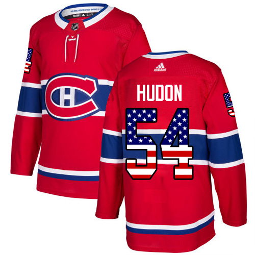 Pánské NHL Montreal Canadiens dresy 54 Charles Hudon Authentic Červené Adidas USA Flag Fashion