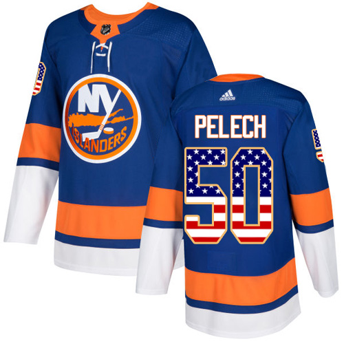 Pánské NHL New York Islanders dresy 50 Adam Pelech Authentic královská modrá Adidas USA Flag Fashion