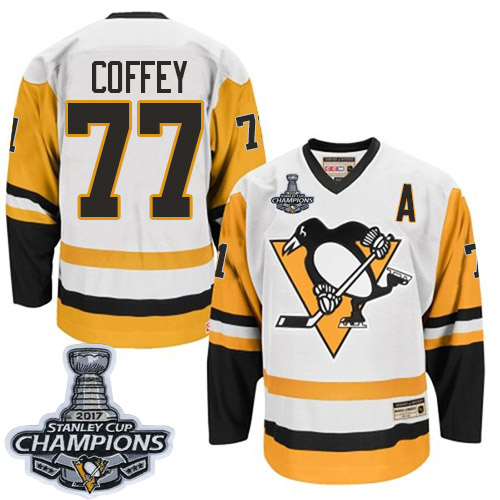Pánské NHL Pittsburgh Penguins dresy 77 Paul Coffey Authentic Throwback Bílý CCM Stanley Cup Champions