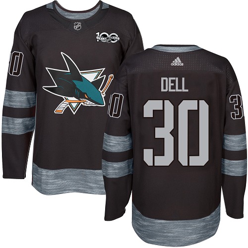 Pánské NHL San Jose Sharks dresy 30 Aaron Dell Authentic Černá Adidas 1917 2017 100th Anniversary