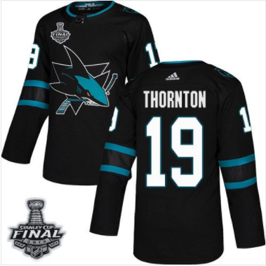 Pánské NHL Sharks 19 Joe Thornton Černá 2019 Stanley Cup Final Stitched